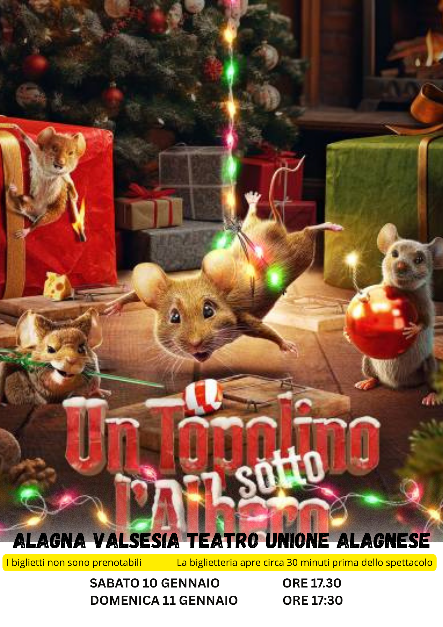 "Un Topolino Sotto L'Albero" alle ore 17:30 al Teatro Unione Alagnese English"Un Topolino Sotto L'Albero" at 5:30 p.m. at Teatro Unione Alagnese |