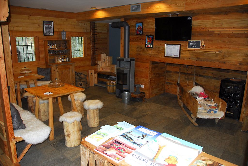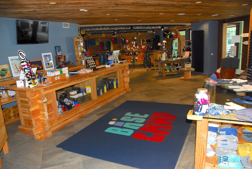 It also offers a ski / boot storage facility in heated and ventilated lockers located inside the shop in a cozy area with wood stove, books and products at km 0. Base Camp is located next to the Monterosa Ski lifts