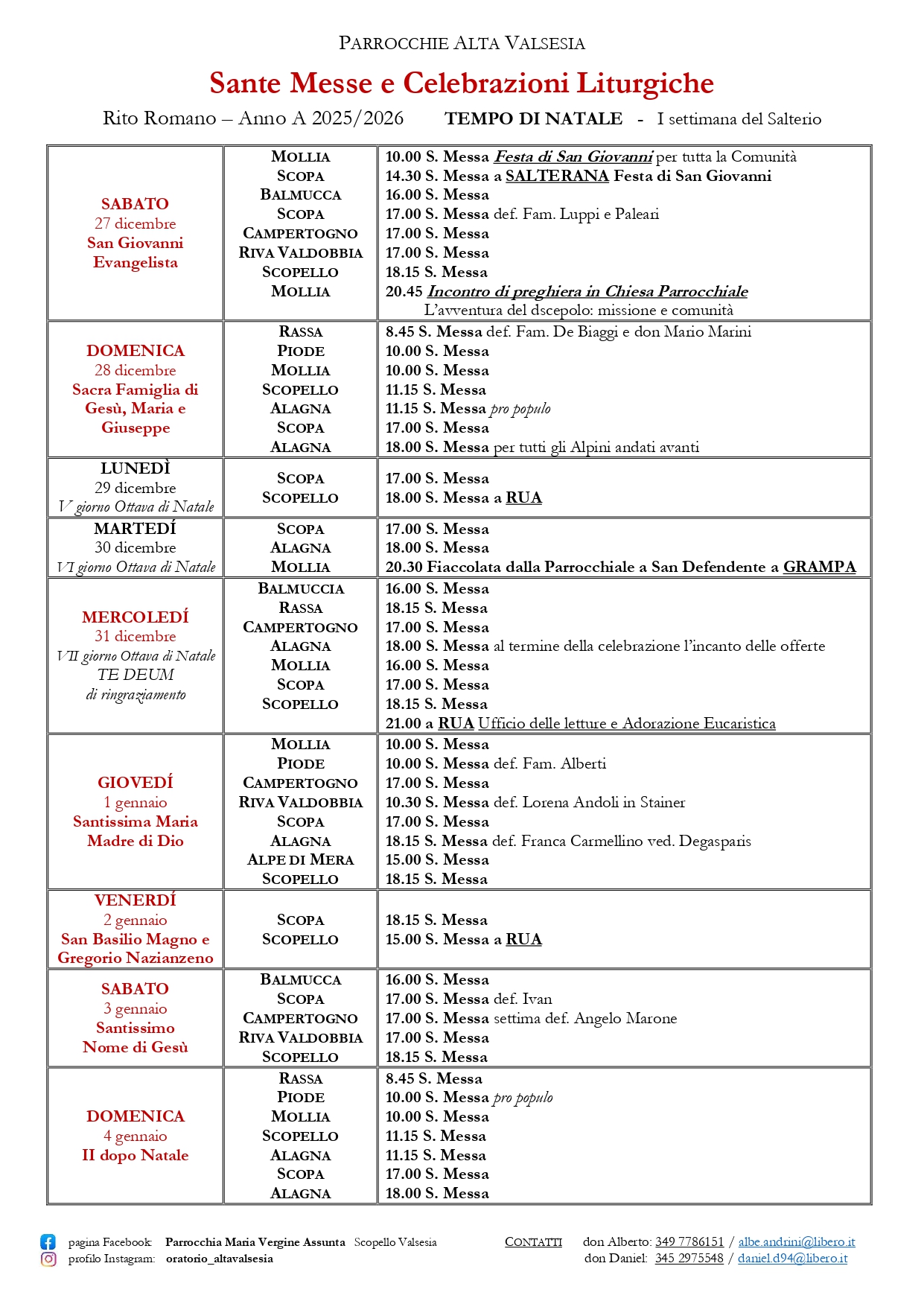 Now, after having been the guide of the village's Catholic community since 1980, he has retired to give way to Don Alberto, reference point for all the parishes in the Upper Valley.