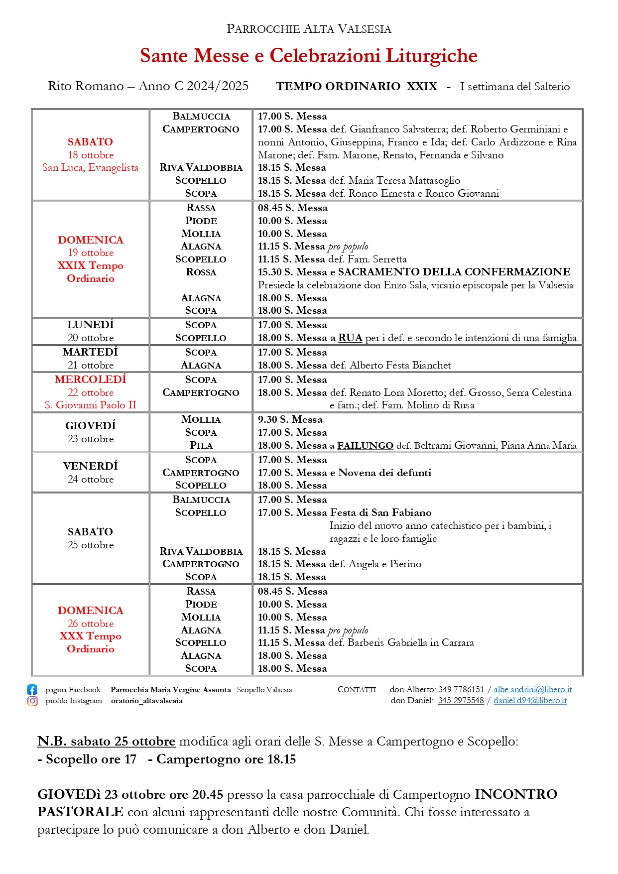 Holy Masses Timetables