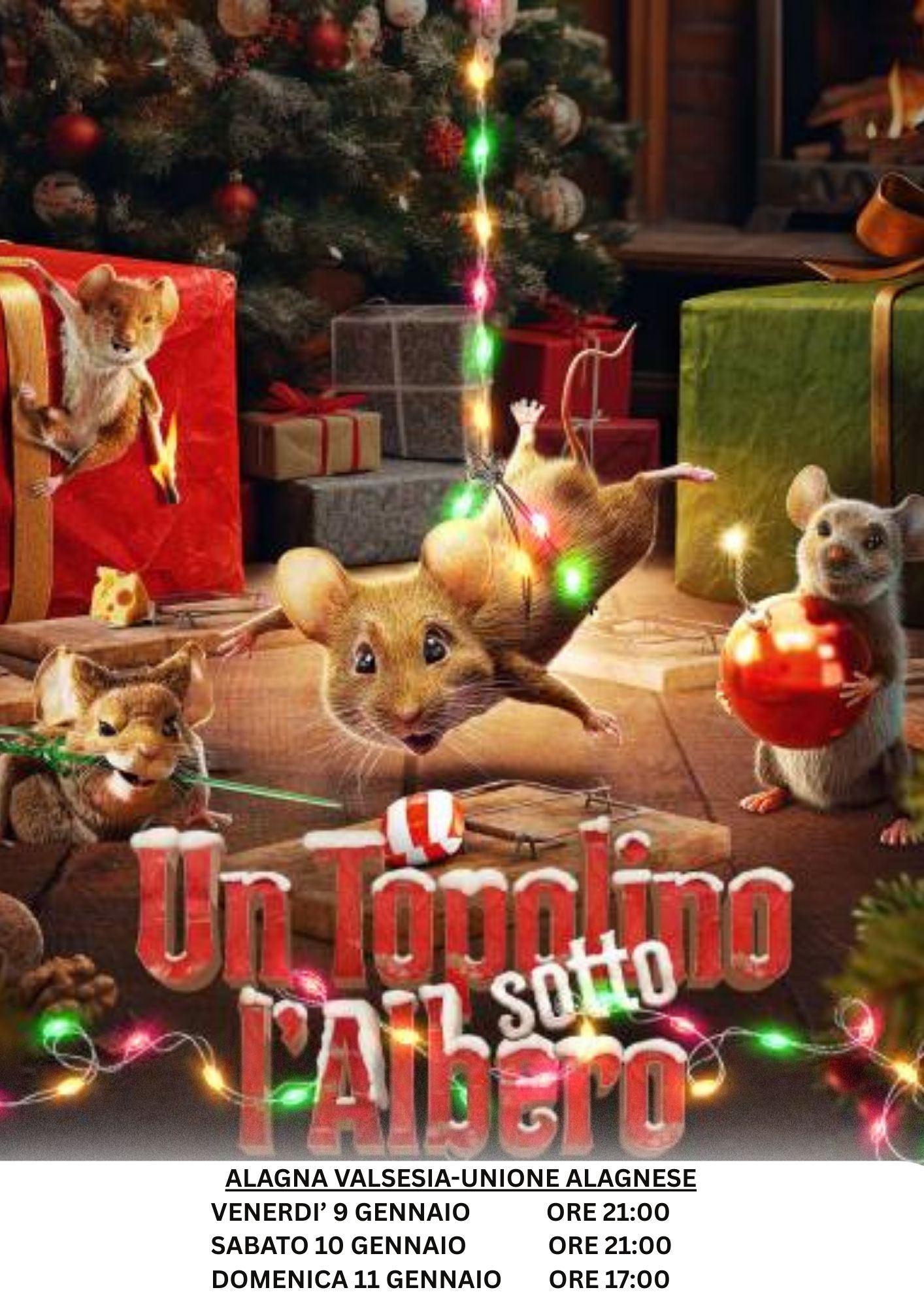 "Un Topolino Sotto L'Albero" alle ore 21:00 al Teatro Unione Alagnese English"Un Topolino Sotto L'Albero" at 9:00 p.m. at Teatro Unione Alagnese |